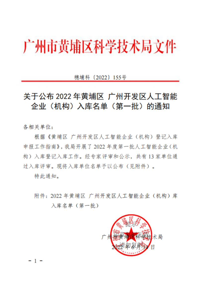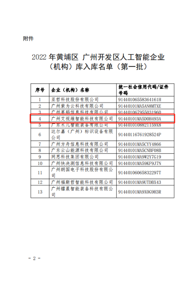 近日,廣州市黃埔區(qū)科技技術局公布了2022年黃埔區(qū) 廣州開發(fā)區(qū)人工智能企業(yè)(機構)入庫名單,廣州艾視維智能科技有限公司經(jīng)過專家團隊的層層評審,被認定為2022年廣州開發(fā)區(qū)人工智能企業(yè)(機構)第一批入庫企業(yè)。