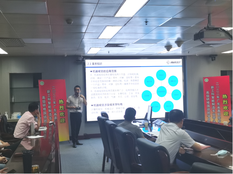 2022年高職院校教師“新工科智能制造(機(jī)器人)專業(yè)帶頭人高級(jí)研修(國培)”培訓(xùn)班于2022年7月14日-8月10日在廣東技術(shù)師范大學(xué)隆重舉行。7月17日,廣州艾視維智能科技有限公司總經(jīng)理謝顯飛榮幸受邀前往與參會(huì)的各位教授老師就機(jī)器視覺課程進(jìn)行探討交流,并就“機(jī)器視覺、機(jī)器人”主題發(fā)表演講。