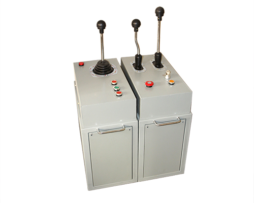 機械傳動部份裝在箱體上部的罩內,該傳動機構分為單手柄聯動操縱機構、抓斗雙手柄操縱機構、主付鉤雙手柄操縱機構、單手柄操縱機構以及單手柄水平操縱機構。手柄運動都是用直齒齒輪傳動凸輪軸的??刂破鞯耐馆嗇S均為立式布置,傳動部份各支點全部用滾動軸承,以降低功率損耗。